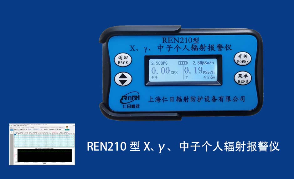 REN210 個人計量報警儀REN210型X、γ、中子個人輻射報警儀內(nèi)置SiPM和鋰玻璃晶體組成中子探測器儀器,采用反照率方式探測中子射線,同時也能探測X、γ射線。因此它可同事監(jiān)檢測X、γ、中子三種射線。能顯示工作場所的劑量當量率和累積劑量,更換電池時,日期及累積數(shù)據(jù)能永久保存。可選配RenRiPersonal個人劑量管理軟件,該軟件可存儲多個人的歷史數(shù)據(jù),能記錄日累積、月累積、年累積、輻照時長、計算平均劑量率、扣除或不扣除本底輻射,且以文字和圖譜的方式展現(xiàn)數(shù)據(jù)。廣泛應(yīng)用于環(huán)保、化工、水泥、煤礦、土木工程、石油、醫(yī)院、疾控、進出口商檢、核電、加速器、機場、中子源庫和其他安檢、邊境控制海關(guān)檢測等領(lǐng)域中的工作人員進行個人安全防護監(jiān)測及放射性提示。